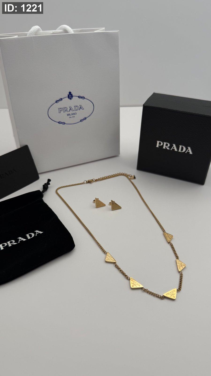 طقم ماركه حلق مع سنسال PRADA شامل الملحقات الاصليه