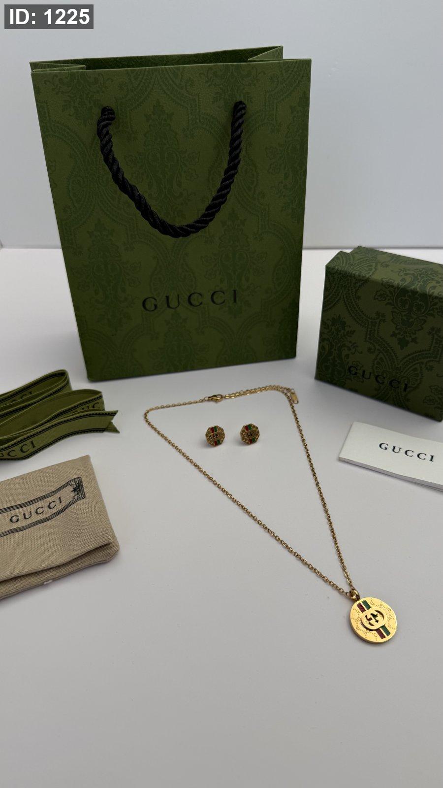 طقم ماركه حلق مع سنسال GUCCI شامل الملحقات الاصليه
