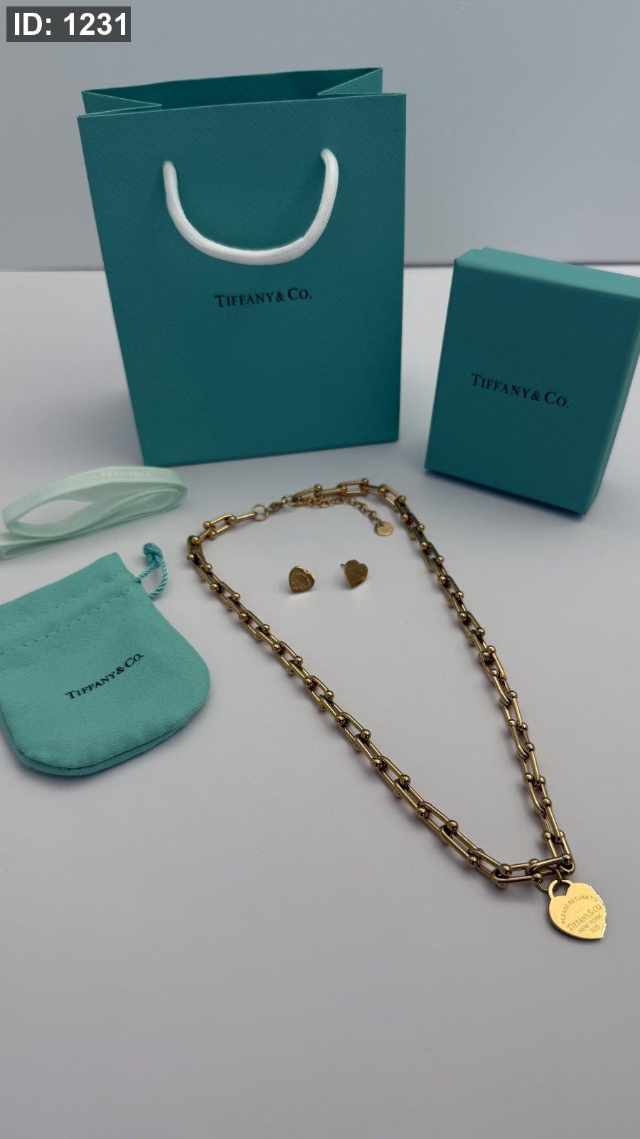 طقم ماركه حلق مع سنسال (TIFFANY & CO تيفاني ) شامل الملحقات الاصليه