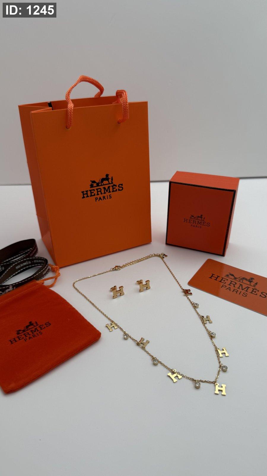 طقم ماركه حلق مع سنسال HERMES شامل الملحقات الاصليه