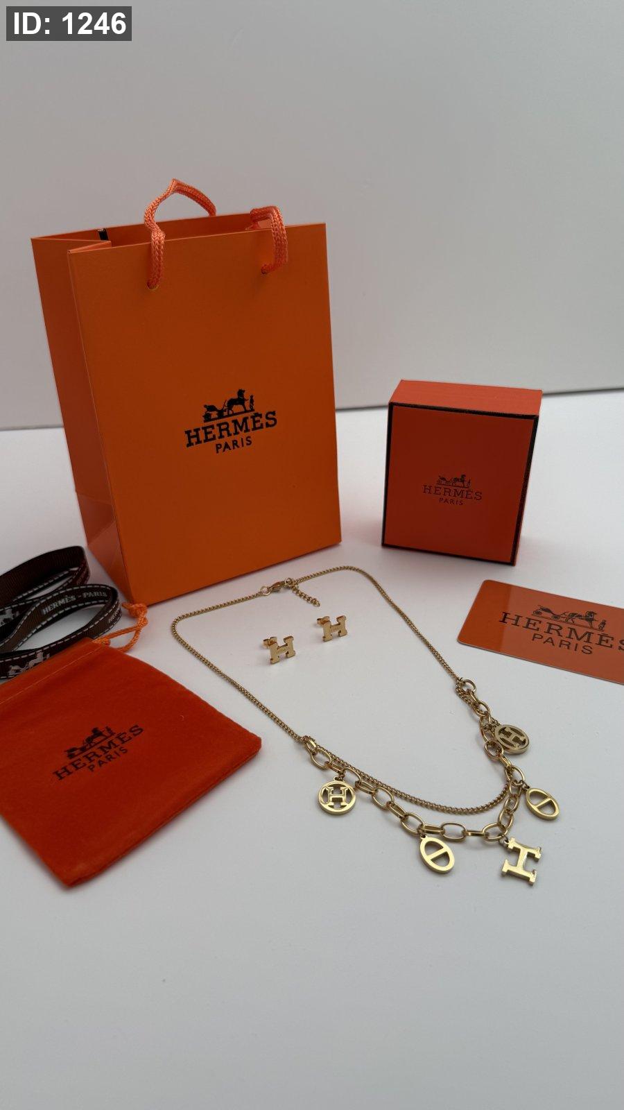 طقم ماركه حلق مع سنسال HERMES شامل الملحقات الاصليه