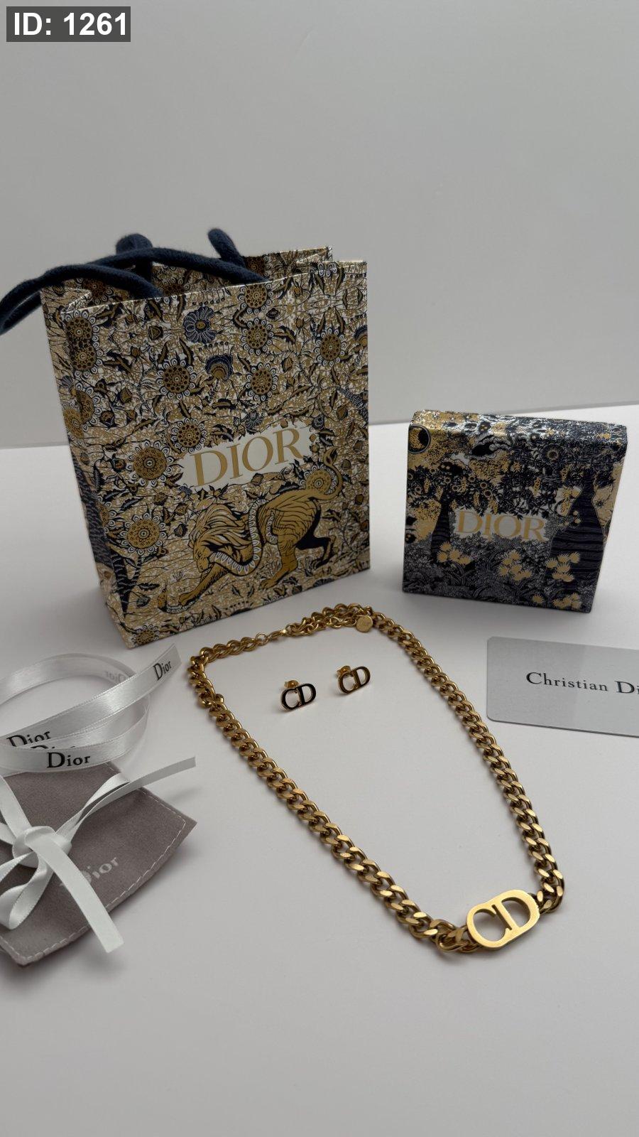 طقم ماركه حلق مع سنسال DIOR شامل الملحقات الاصليه