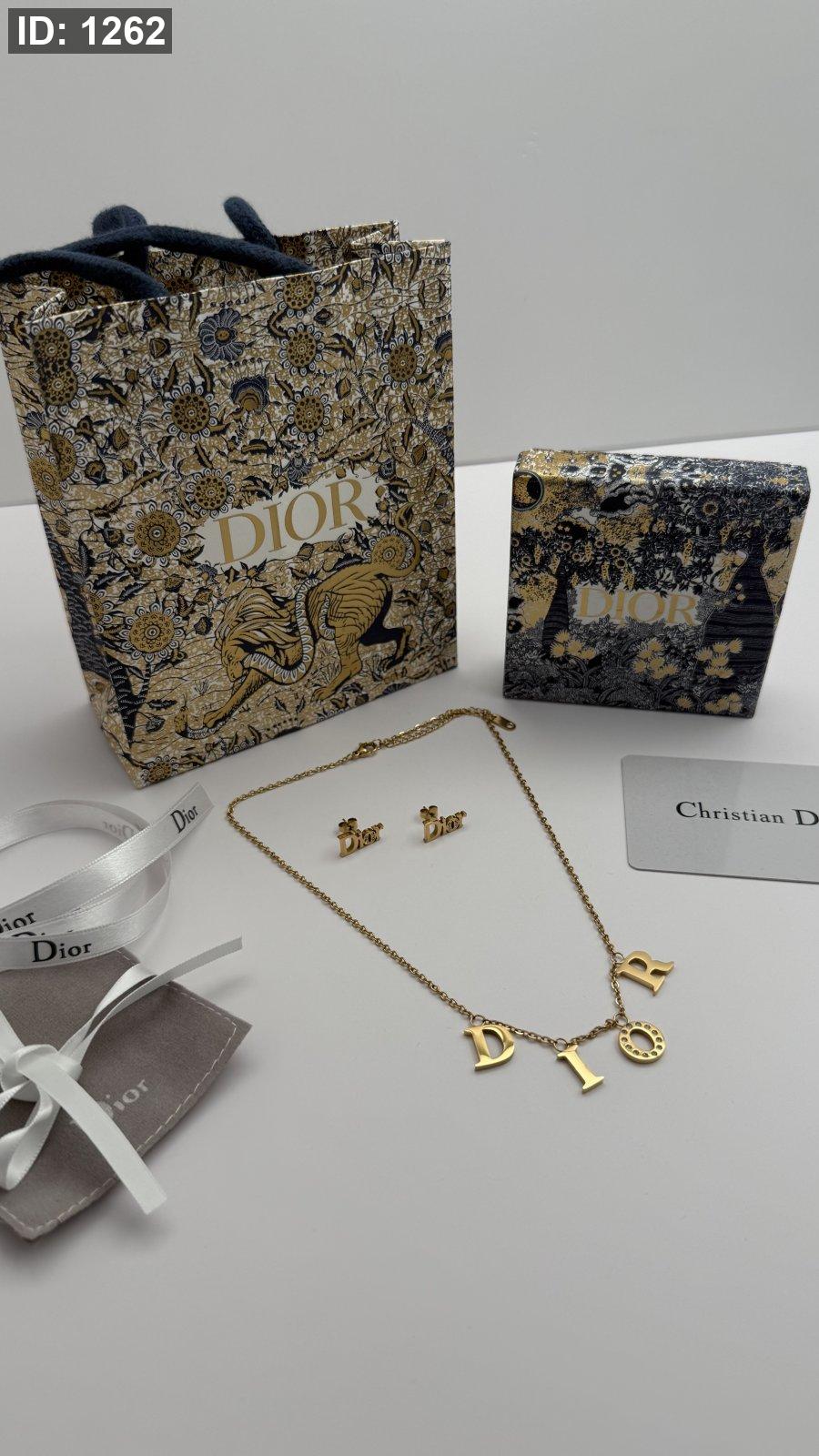 طقم ماركه حلق مع سنسال DIOR شامل الملحقات الاصليه