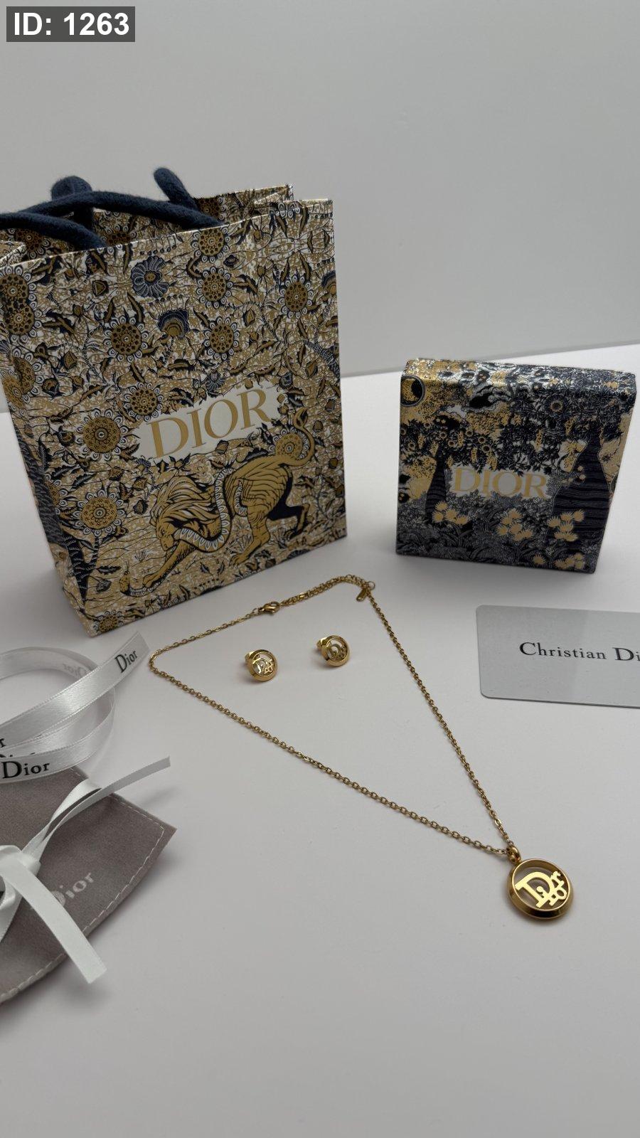 طقم ماركه حلق مع سنسال DIOR شامل الملحقات الاصليه